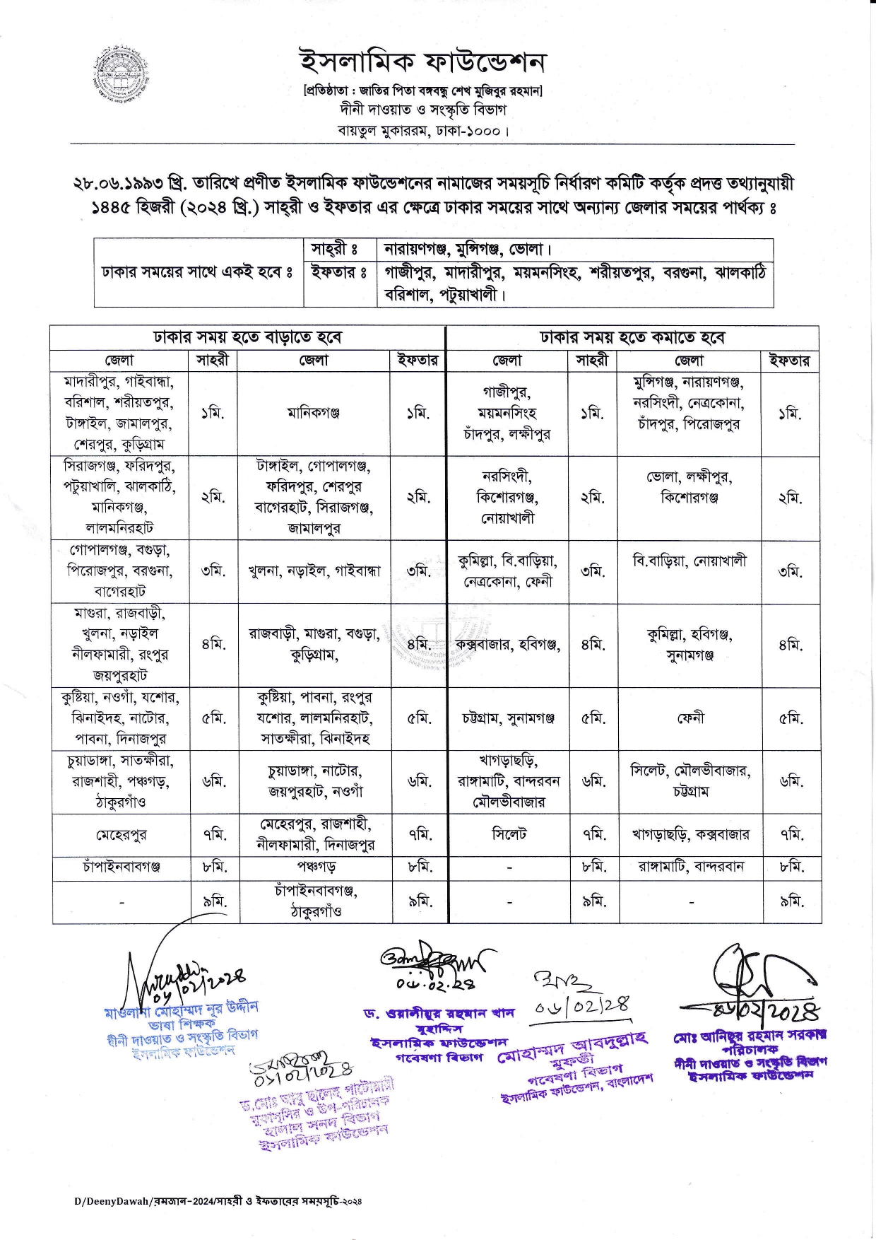 ইসলামিক ফাউন্ডেশন সেহরি ও ইফতারের সময়সূচি ২০২৬